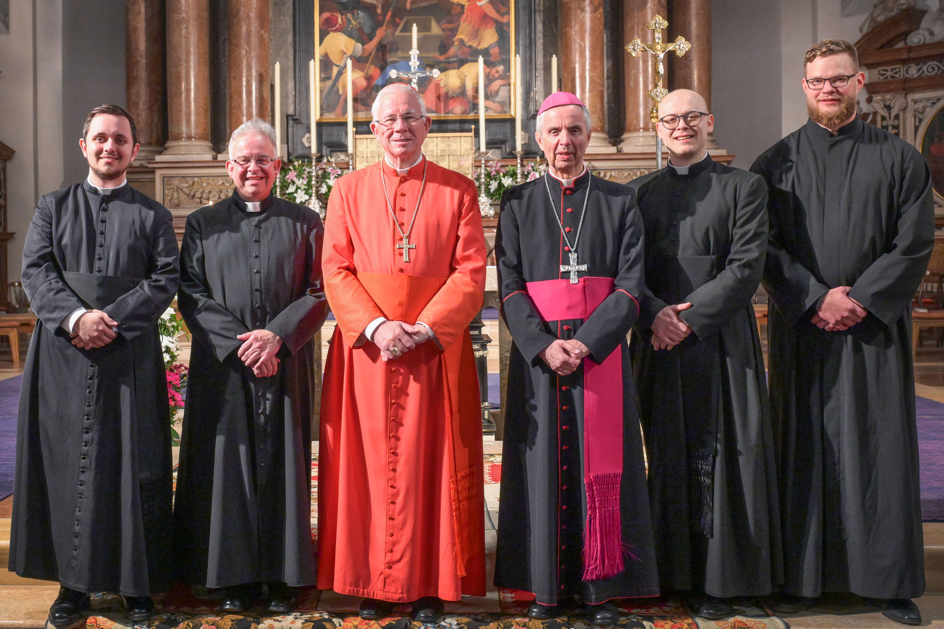 Der wesentliche Impuls des geistlichen Lebens aber sei das Licht der Gegenwart Gottes. Dieses Licht leuchtet unaufdringlich hell im Wort Gottes. „Wie gehen wir in den Stürmen unserer Zeit noch mit dem leisen flackernden Licht der Gegenwart Gottes um“, fragte Erzbischof Lackner die Weihkandidaten: „Ihr seid Diener der Geheimnisse Gottes und der Kirche“. Daher sei es umso entscheidender, die Gegenwart Gottes im Leben des einzelnen und im Leben der Kirche in der Rede von und über Gott wachzuhalten. Schließlich sollen die Diakone vor allem Zeugen und Hüter des Wortes Gottes sein: „Bewahrt das Wort Gottes in euren Herzen. Das wird in Zukunft zuallererst eure Verantwortung sein müssen.“ Der Erzbischof schloss mit den Worten: „Gott ist treu. Gott hat euch diesen Anfang geschenkt. Ihr habt euch prägen lassen, nun empfängt die Weihe.“