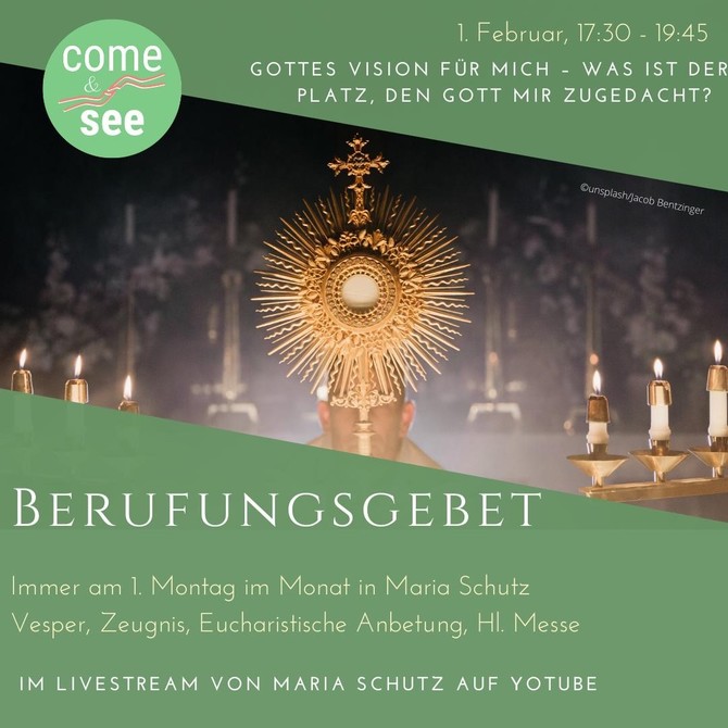 Ab Februar 2021 lädt die Berufungspastoral Wien jeweils am ersten Montag des Monats zum Berufungsgebet in Maria Schutz. Auch im Livestream am Youtube-Kanal von Maria Schutz.